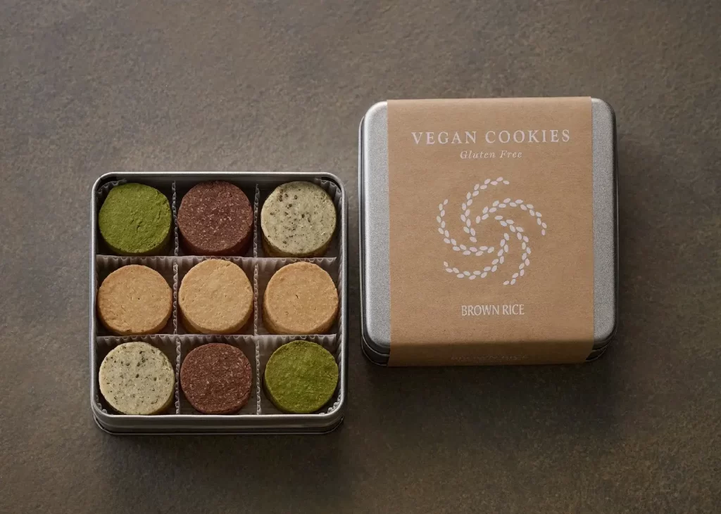 ラインナップは黒ごまのほか、定番のプレーン、チョコレート、抹茶の全4種。小麦粉の代わりに有機国産米粉、バターやパーム油の代わりに有機ココナッツオイルを採用。メープルシュガーとココナッツのやさしい甘みで、さくさくとした食感が特長です。厳選した素材本来のおいしさを詰め込んだヴィーガンクッキー缶は、心も身体も喜ぶギルトフリーなスイーツ。ご自宅でのティータイムにはもちろん、大切な方へのギフトにもぜひご利用ください。