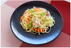 「卵・小麦・乳不使用 おでんの素」で作る塩焼きそばは、だしの旨みが効いた風味豊かな一品。おでんの素と塩・こしょうだけで、簡単に仕上がります。