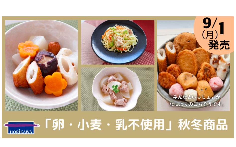 家族や友人と囲むおでんの時間は、寒い季節の楽しみのひとつ。しかし、食物アレルギーをお持ちの方やそのご家族にとっては、食材選びに不安を感じたり、みんなで同じものを食べられなかったりすることも少なくありません。堀川の商品は、やさしい味わいとみんなで同じおでんを囲める安心感が魅力です。食卓のぬくもりが、さらに広がるような秋冬商品をご紹介します。