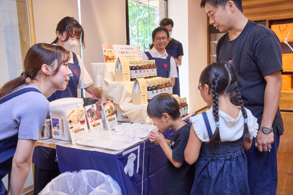 イベントでは、シェフの方がポン酢を使ってローストビーフ用のソースを調理してくださったり、企業ブースではアルファ電子さんとのコラボで「う米めん」に合わせたつゆ、ぽん酢を使った浅漬け、白だしでお吸い物を提供したりしました。