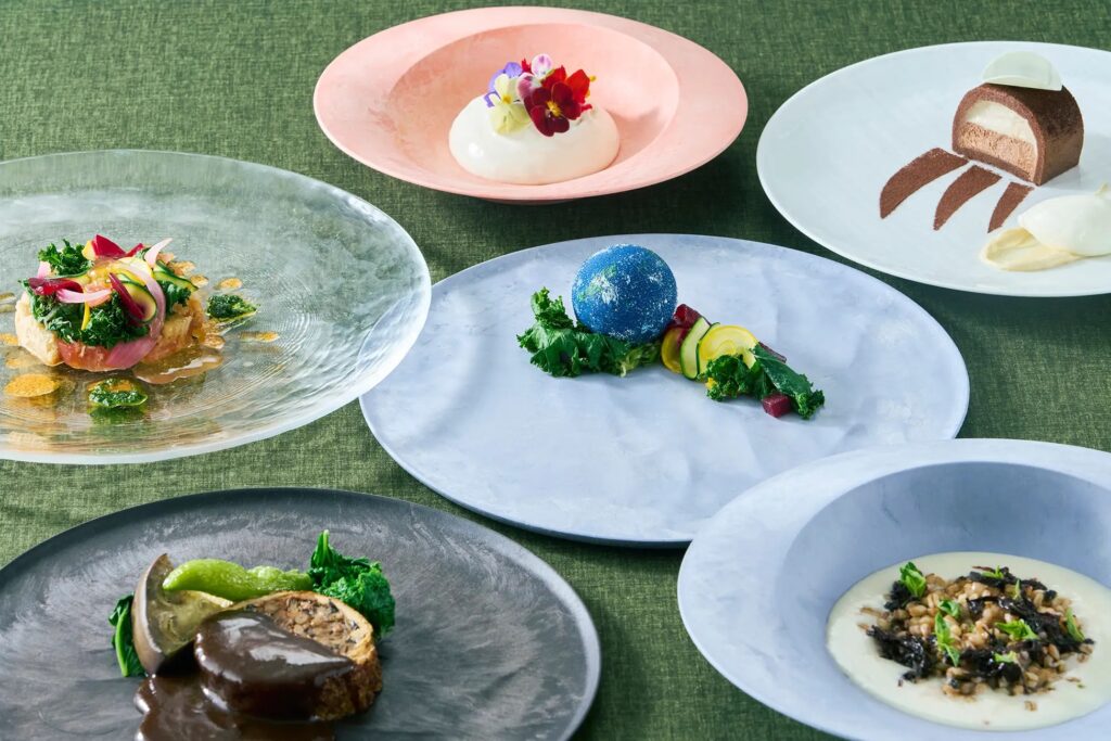 「フレンチダイニング トップ オブ キョウト」では、地球温暖化や健康への関心の高まりや食の国際化を背景に、多様化する食のニーズに対応する新たな取り組みとして、不二製油株式会社と協業し、肉や魚を使用していないとは思えないほどの満足感を実現したヴィーガンコース「Terravenir(テラヴェニール)」を2025年7月1日より販売開始しました。