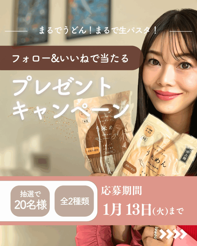 う米めん「白米麺」「玄米麺」2種類セットを抽選で20名様にプレゼント!