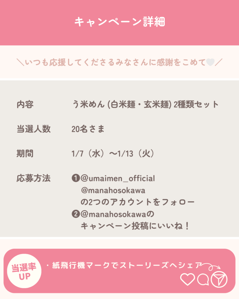 ②@manahosokawa のキャンペーン投稿にいいね♡をする